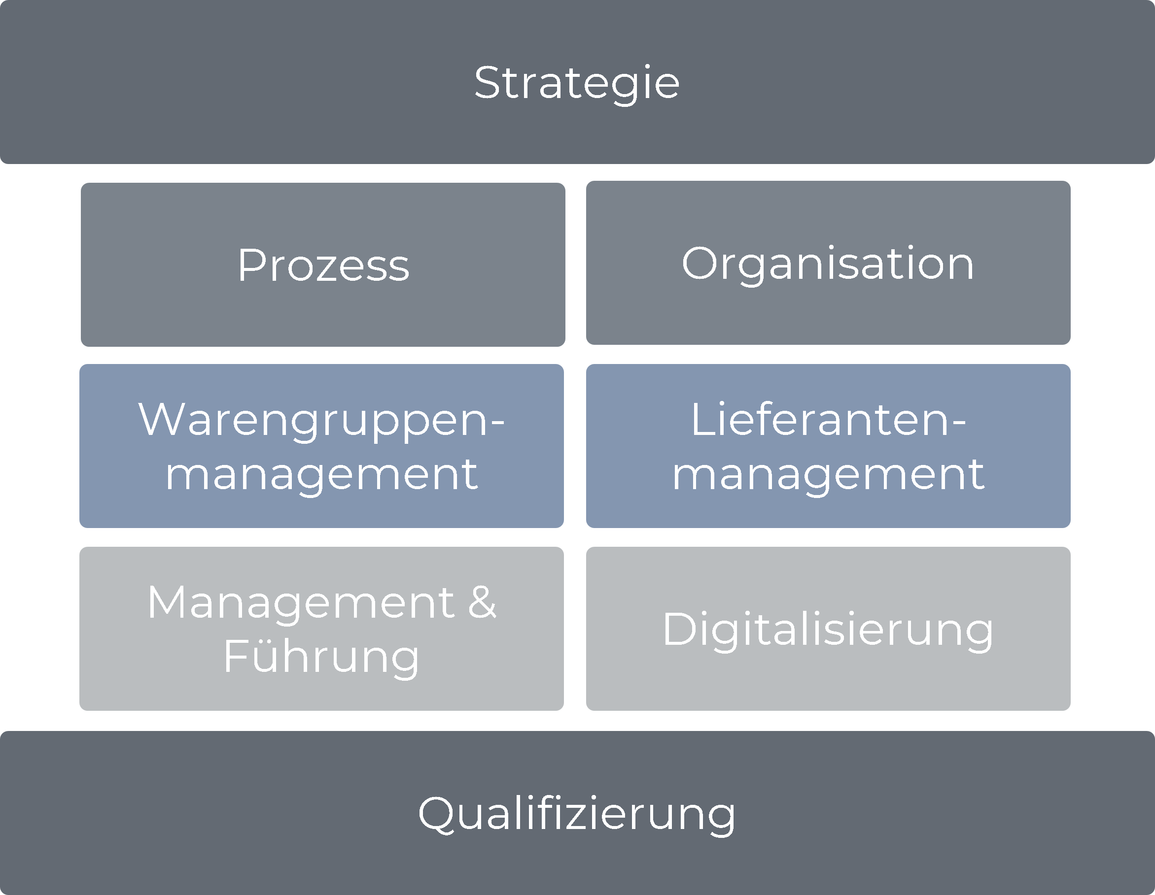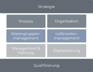 – Handlungsfelder wie Strategie, Organisation, Warengruppen-Management etc.